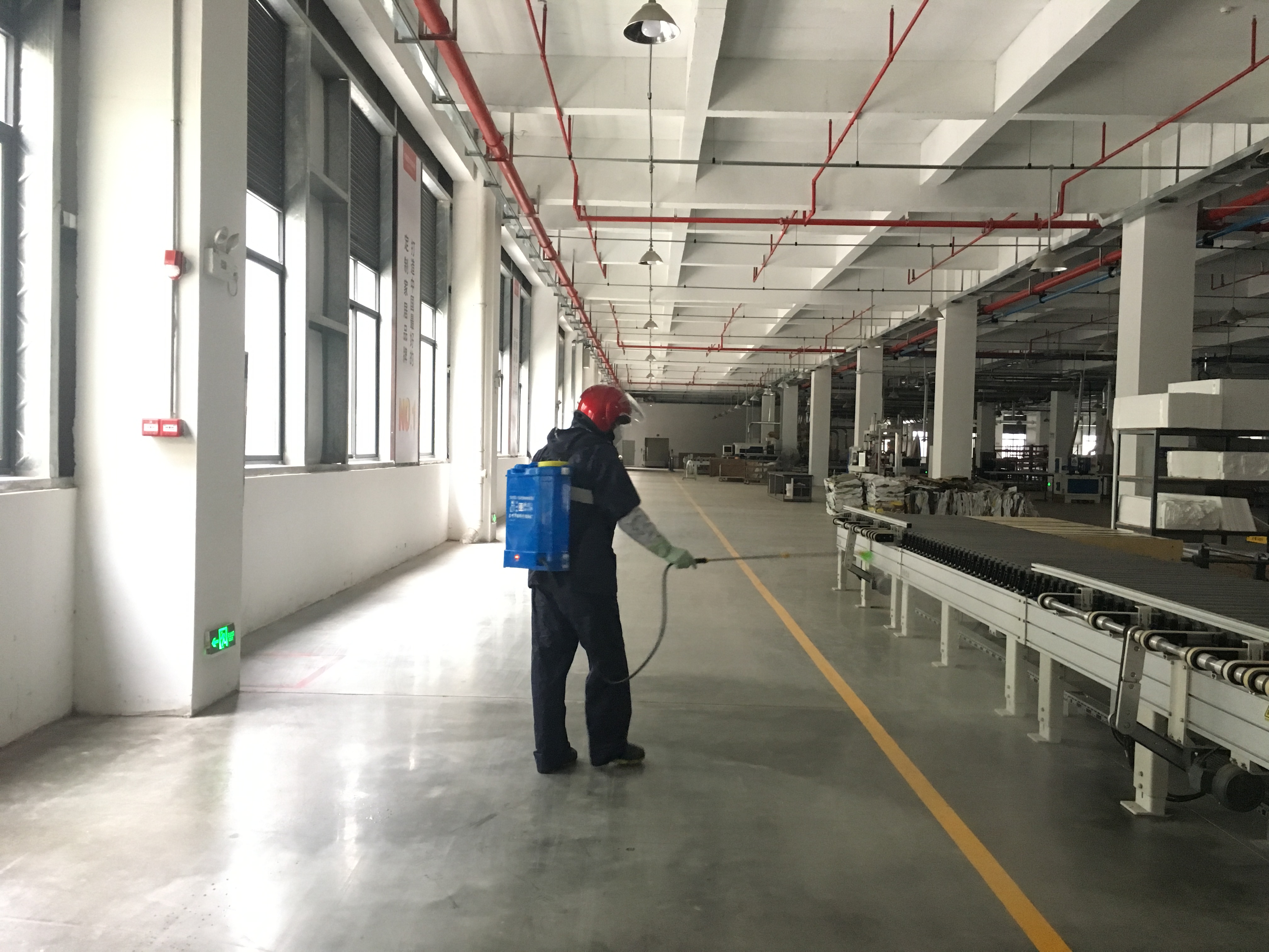 圖:車間、生活區每個地方都進行消毒殺菌,保證員工身體健康 未雨綢繆,做實做細迎復工